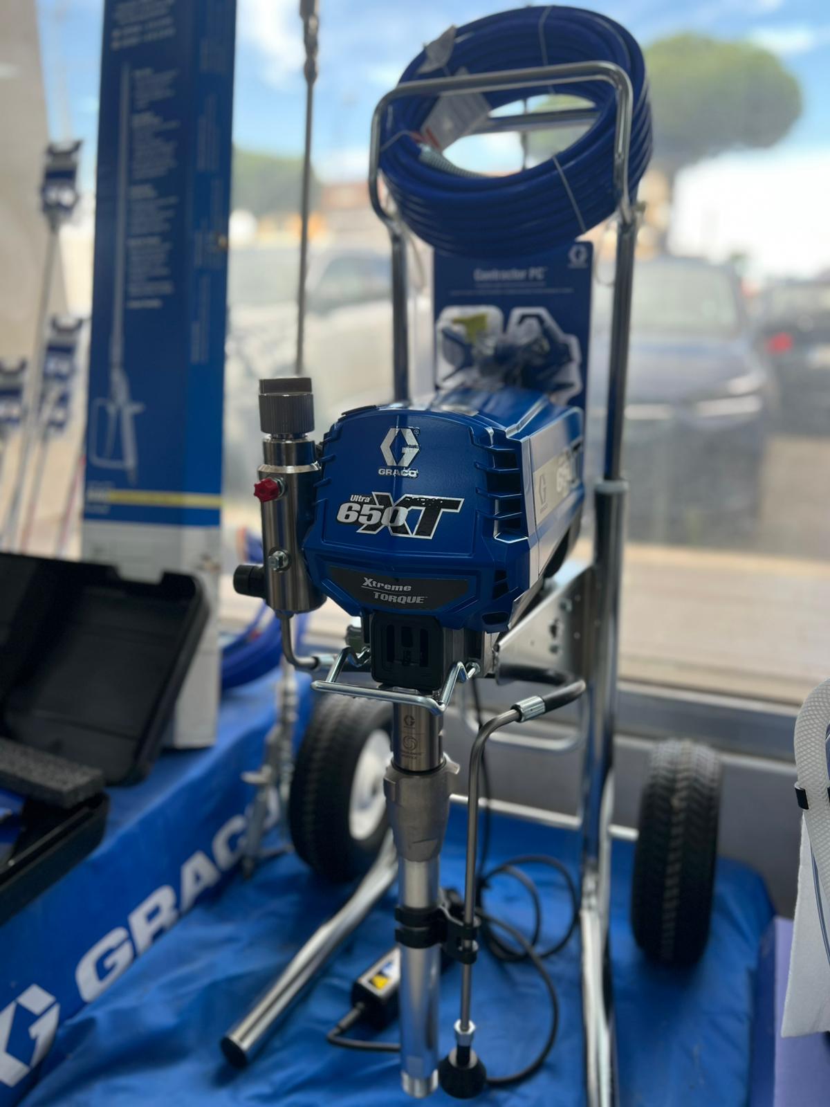 La Graco Ultra 650 XT può fare quasi tutto. Lacche, vernici per pareti interne e per facciate. Questo rende la Ultra 650 XT estremamente versatile nelle operazioni di verniciatura. Il peso di 31,3 kg può essere facilmente spostato dal cantiere grazie al carrello.