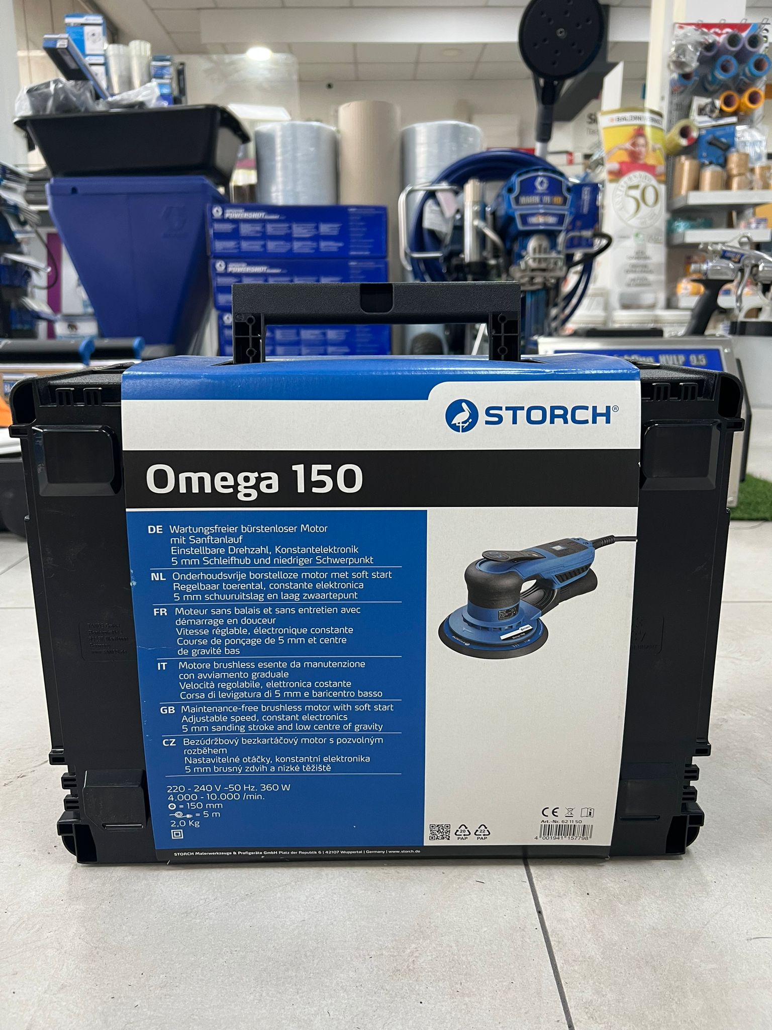 Con la levigatrice rotorbitale Omega 150 è possibile eseguire lavori di levigatura su superfici di piccole e medie dimensioni. Grazie alla corsa di levigatura di 5 mm e all‘elettronica costante, è possibile ottenere risultati ottimali,  dalla levigatura pesante alla finitura più fine. Con un peso di soli 1,1 kg e un baricentro basso, l‘Omega 150 è facile da tenere in mano e offre un controllo ottimale. L‘Omega 150 si accende e si spegne tramite la leva di comando ed è dotato di un freno a disco incorporato. Questo garantisce una manipolazione sicura.